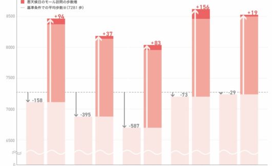ショッピングモール訪問が悪天候日の歩数減少を抑制 ~モール訪問で1,269歩の増加、悪天候日はより顕著な増加傾向に~