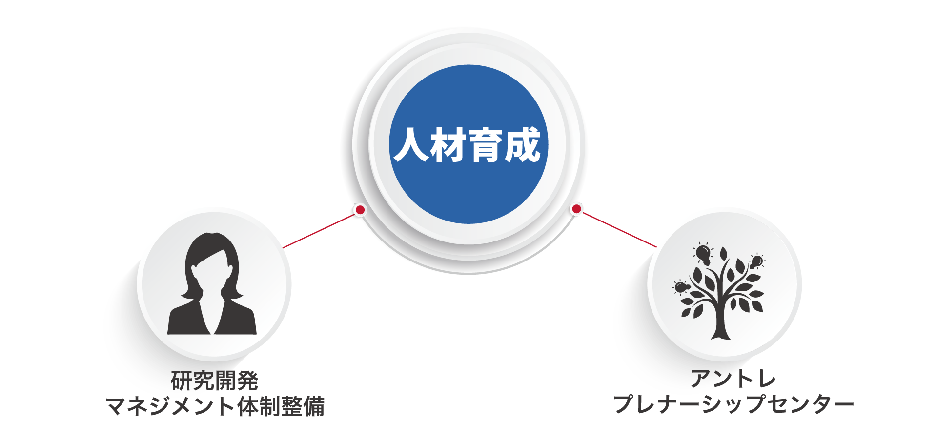 千葉大学は、学術研究・イノベーション推進機構を中心に、研究開発マネジメント人材が実践的な研修や明確なキャリアパスを通じて、研究戦略や大学経営を支える人材へと成長できる仕組みを整備しています。これによって育成した研究開発マネジメント人材の活躍を通じて、世界とつながる研究大学としての進化を加速させていきます。