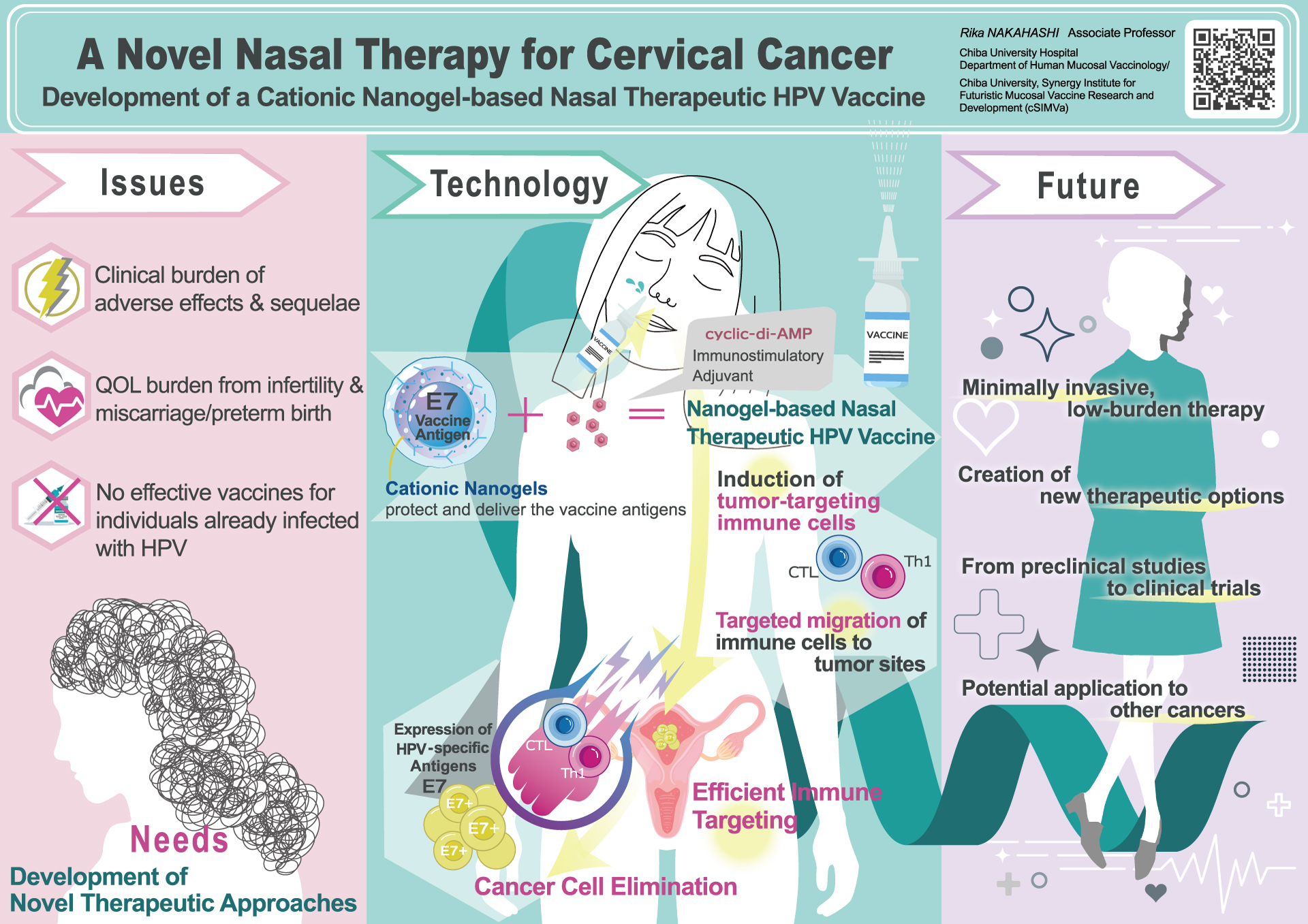 Associate ProfessorBased on fundamental research in mucosal immunology, I am developing mucosal vaccines that can be administered via the nasal and oral routes. Through the COVID-19 pandemic, I strongly recognized the importance not only of “not becoming infected,” but also of “not transmitting infection to others.” With the goal of realizing practical mucosal vaccines that can block infection at its entry point, I am actively collaborating with many researchers and industry partners.