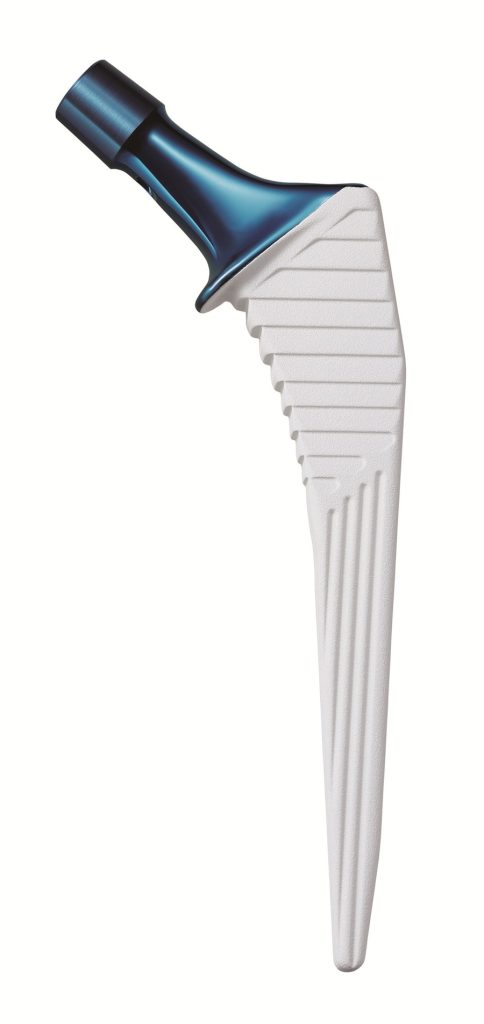 Image title: A collared, fully hydroxyapatite-coated femoral stem for hip replacement