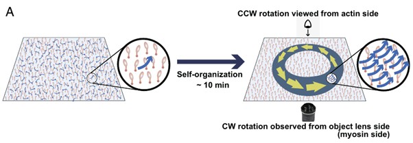 Understanding how microscopic interactions between proteins in cells produce large-scale organization and asymmetry is a fundamental question in cell biology. In a recent study, researchers from Japan investigated how actin and myosin create cell-scale structures using experimental setup. They found that Chara corallina myosin XI—a fast motor protein—drives actin filaments into large unidirectionally rotating rings. Their findings reveal physical principles of self-organization, inspiring new ways to design self-organizing biomimetic materials for biotechnological applications.