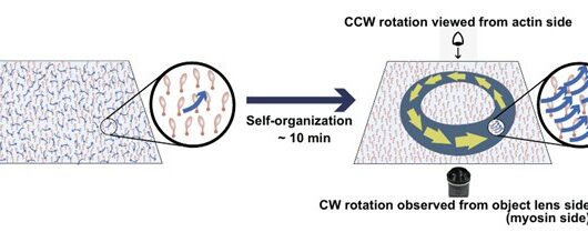 Self-Organization of Cell-Sized Chiral Rotating Actin Rings Driven by a Chiral Myosin